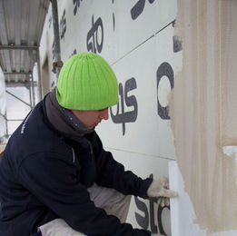 Unter anderem Wärmedämm-Verbundsystem (WDVS) sowie Polystyrol-Hartschaumstoffplatten(EPS/XPS) im Verbund geklebt. Bei der Dämmung kommen verschiedene Möglichkeiten zum Einsatz. Wir beraten Sie diesbezüglich gerne. Hier eine Auwahl: